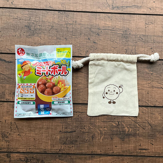 1)イシイの人気キャラクター『ミート君』のオリジナルミニ巾着