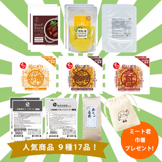 発売から 3 ヶ月で 1 万食を販売した『イシイの佰にぎり』や、昨年秋発売した冬の人気商品『ビーフシチューベース』など 9 種 17 品を詰め込みました。