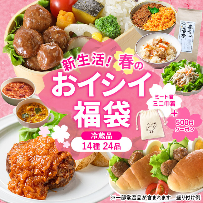 さらに、イシイの人気キャラクター『ミート君』のオリジナルミニ巾着や次回使えるクーポン 500 円分も付いてきます。今後も多くのみなさまに楽しんでいただける商品や楽しい思い出をお届けしてまいります。「春のおイシイ福袋」 で素敵な新生活をお過ごしください。