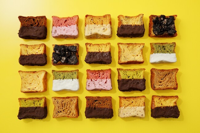 縦横10センチほどの小さなフレンチトーストは、見た目がカラフルでかわいく、常時11~12種類ございますので、様々なフレーバーをお楽しみいただけます!