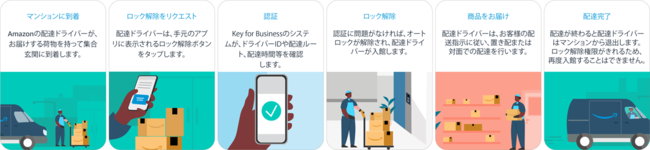 Amazon Key for Businessは、Amazonの委託先であるドライバーが、お届けする商品を持っているときだけマンションのオートロックを解除して、お客様ご指定の場所に商品をお届けできる仕組みです。