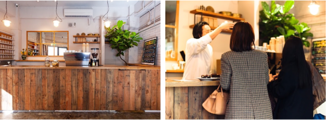 また、店舗内の一部にはコミュニティの形成の活性化を目指す為、ポップアップストアを開催できるスペースを用意しています。今後、クリエイティビティ溢れるブランドとのコラボレーションを通して、コミュニティを拡張していきます。また、支払いはクイックコミュニケーションを意識し、キャッシュレスでの対応、ご家族のペットも来店可能で、アニマルフレンドリーに対応しています。