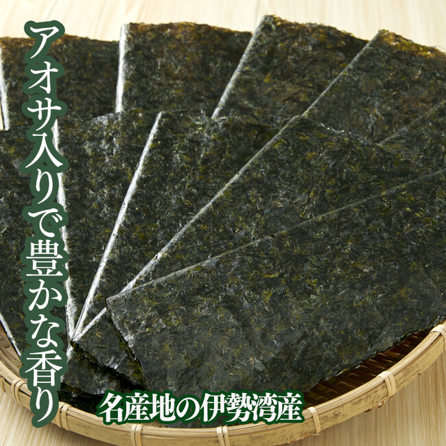 (縦・横1回ずつの合計2回)。まずはそのまま。そしてだし醤油をつけて炊き立てご飯と召し上がってみてください。その他おにぎりや磯辺焼きなど定番の食べ方はもちろん、三重県の沿岸部の住民に人気の海苔雑炊や海苔バタートーストなどもおススメです。