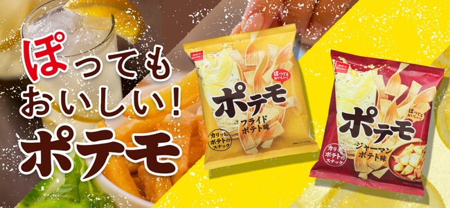 自宅でお酒を飲む”家飲み”の定着とともに、缶チューハイや缶ハイボールなどのRTD(=Ready To Drink)や、のど越し爽やかな強炭酸飲料が人気となっています。これら暑い季節に飲みたくなる、シュワッと爽快なのど越しの炭酸系アルコールや炭酸ソフトドリンクとの相性抜群な、おつまみ系スナック菓子「ポテモ」。あと引く旨さの「フライドポテト味」に加えて、新たに「ジャーマンポテト味」が登場します。