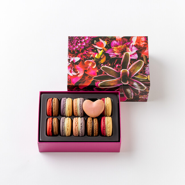 21世紀のパティスリー界を先導する第一人者、ピエール・エルメ氏。毎年ホワイトデーの人気ナンバー1アイテムである、マカロンの詰め合わせをご紹介。2023年は、初登場の「フィグ エ ローズ」やスミレとカシスとバニラの「アンヴィ」、かわいらしいハート型の「クール アンフィニマン ローズ」など、春の訪れを感じる華やかなマカロンを詰め合わせました。フラワーアーティスト東信氏によるアレンジメントを施した限定BOXです。