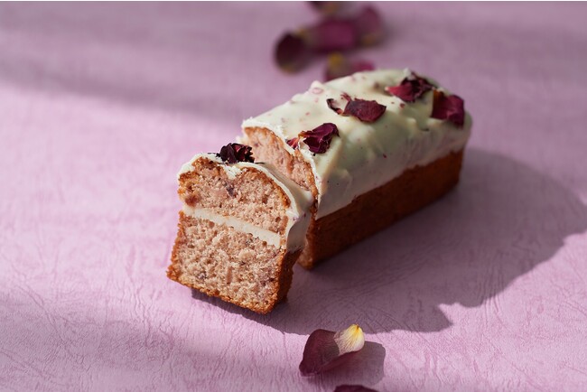 今回は奥出雲薔薇園のバラ「さ姫」の香りを主役にしたパウンドケーキが登場。『さ姫』のパウンドケーキは、フリーズドライのフランボワーズ入りでほのかにピンク色のチョコレートでコーティング。乾燥バラをトッピングし、生地の間にサンドしたホワイトチョコと焼き上がりに塗るシロップにフルーティーな香りの奥出雲薔薇園のバラ『さ姫』を使用しており、その優しい甘い香りが広がります。大切な方への贈り物にぴったりです。