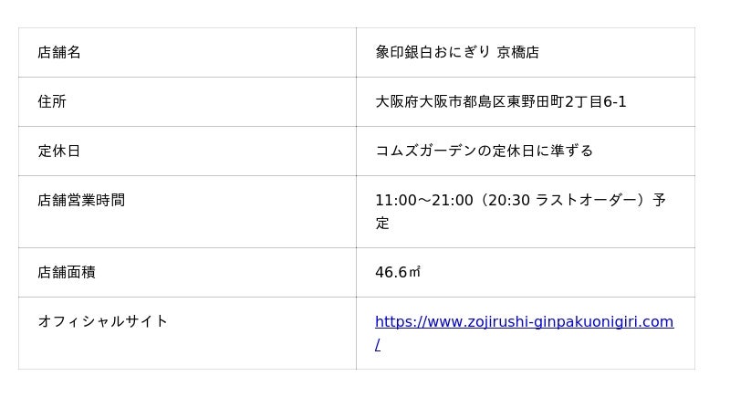 ●「象印銀白おにぎり 京橋店」のメニュー