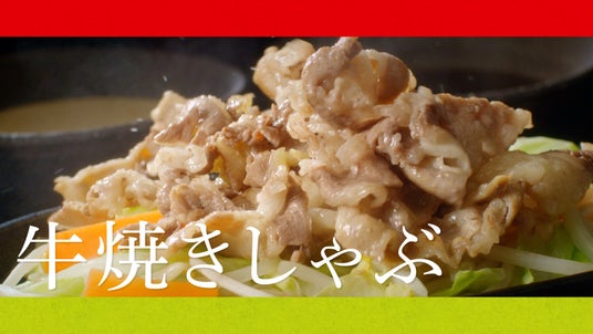 牛焼きしゃぶとたっぷりの野菜を、選べる“たれ”で楽しむ『~1/2日分野菜※が摂れる~牛焼きしゃぶ定食』の魅力を、シズル感あふれる映像と印象的な音楽に合わせ、テンポよく描いています。