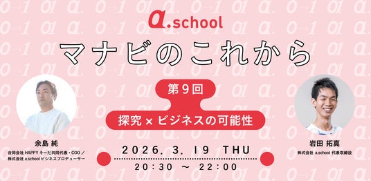 本サービスの提供開始にあわせて、教育事業の事業化に関心をお持ちの法人の方に向けた関連イベントを開催します。株式会社a.school代表の岩田拓真と、合同会社HAPPYそーだ共同代表の余島純が登壇し、「探究学習×ビジネスの可能性」をテーマに、事業化のポイントや直面しがちな課題を掘り下げて対話します。