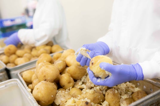 じゃがいもの皮と実の間の一番おいしいと言われている部分を残すため、1日約5,000個のじゃがいもを手作業で皮剥き