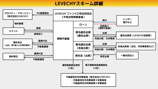 2023年6月、一般的な不動産投資における「初期投資額の大きさ」や「賃貸管理の手間」等を解消し1口1万円から資産形成を行うことができる、不動産クラウドファンディング「LEVECHY(レベチー)」をリリースしました。本事業は、不動産特定共同事業法に基づき3.4号事業者として運営しています。「LEVECHY(レベチー)」は、会員登録から投資申込、分配金の受取りまでをオンラインで完結でき、不動産への投資機会を提供するサービスです。