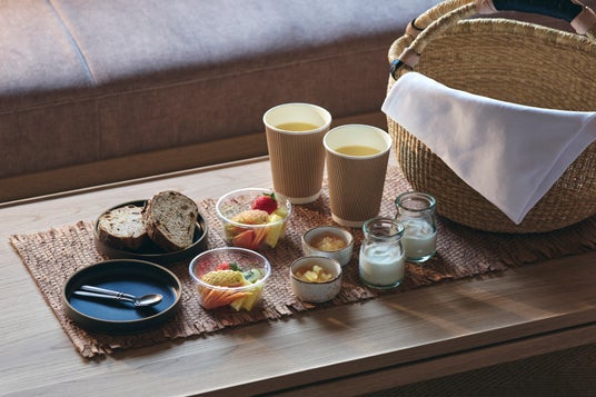 朝食は、相馬家住宅からの眺望と土地の食、函館を五感で愉しむ「ブレックファスト・バスケット」。北海道産の小麦を使用した「自家製カンパーニュ」、函館牛乳でつくる濃厚な「自家製ヨーグルト」を添える。