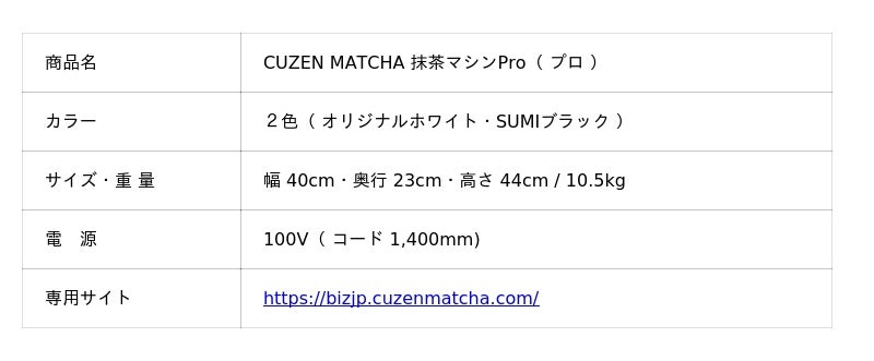 CUZEN MATCHAの業務用モデル「抹茶マシンPro(プロ)」