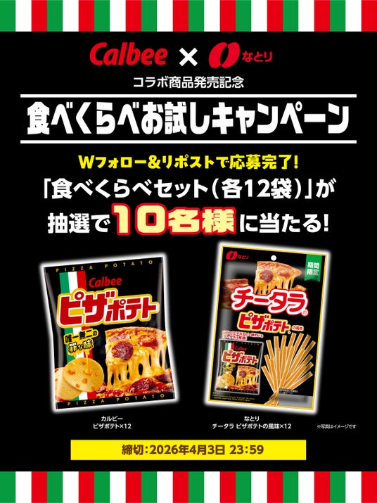 当選賞品:カルビー「ピザポテト(R)」、なとり「チータラ(R) ピザポテト(R)の風味」各12袋