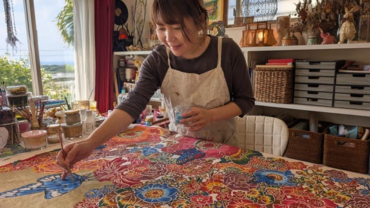 デザインを手がけたのは、伝統的な紅型の技法をベースに、鮮やかな色彩で表現するアーティスト・新垣優香さん。