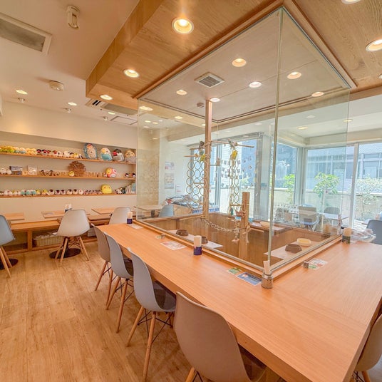カフェと併設して鳥をモチーフにした雑貨コーナーもあり、品揃え豊富な鳥グッズを販売しております。衛生の都合上、鳥さんとの同伴や、放し飼いはしておりません。