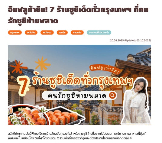 寿司・ラーメン・焼肉・居酒屋など、日本食ジャンルに特化した情報をタイ語で発信。タイ人が日本食レストランを「探し、比較し、選びやすい」形で情報を整理しています。