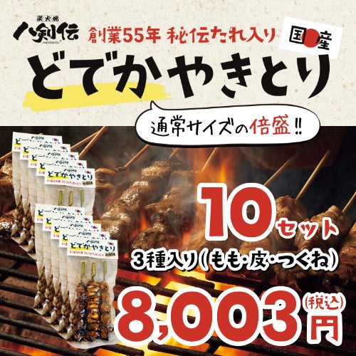 【5%OFF】【送料無料】【名物】国産どでかやきとり《創業55年!秘伝のたれ入り》(もも・つくね・かわ)※1パック3本入り【10パックセット】5%OFF + 送料無料でさらにお得に!