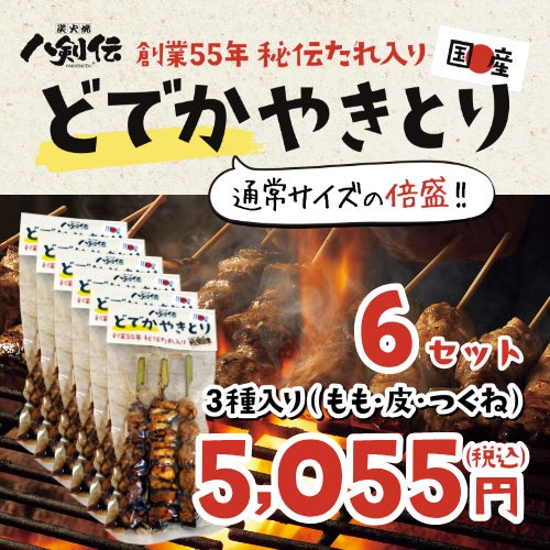 【送料無料】【名物】国産どでかやきとり《創業55年!秘伝のたれ入り》(もも・つくね・かわ)※1パック3本入り【6パックセット】送料無料でお得な6パックセットもご用意!