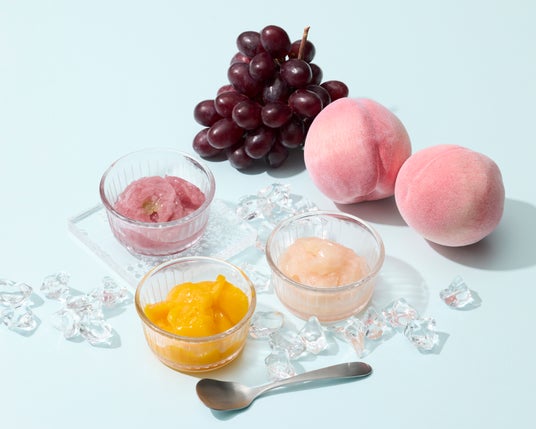 ご自宅の冷凍庫で8時間ほど凍らせることで、シャリシャリと繊細な口どけのシャーベットに生まれ変わる、大人のためのひんやりスイーツです 。マンゴー、ピーチ、グレープの濃厚な果実味を愉しめます 。