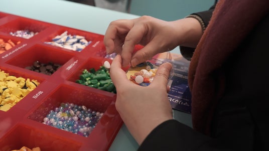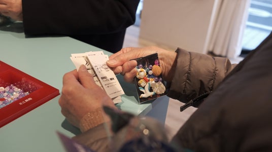 江陵市の特産物が主にモチーフとなったパーツをポーチに詰めて可愛いキーリングが作れる体験ゾーン