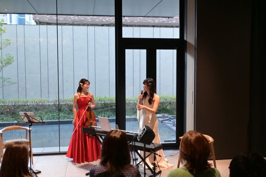 当日はホテル内ラウンジにて開催し、演奏者の奏でる音をダイレクトに感じられる、手の届くような距離感の中、モーツァルトやクライスラーといったクラシックの名曲を中心に、多彩な楽曲が披露されました。楽曲解説を交えた進行により、クラシックに馴染みのない方にも親しみやすい内容となりました。