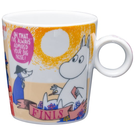 ムーミンのコミックスのワンシーンを、カラフルな配色で再現。2柄を並べても違和感のないバランスに仕上げました。360℃どこを正面にしても楽しめるデザインです。夏から秋にかけての果実や飾り、ベーシックなカップスイーツにも合わせやすい仕様。容量150ccの逆勾配のフォルムは盛り付けやすさにも配慮し、食べ終えた後もコレクションとして楽しめます。