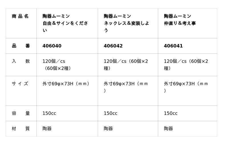 ムーミンの絵柄をあしらった業務用のスイーツ向け陶器は、洋菓子・和菓子直販店さま向けのBtoB限定商品です。(カップを容器として用いる菓子類に限ります)