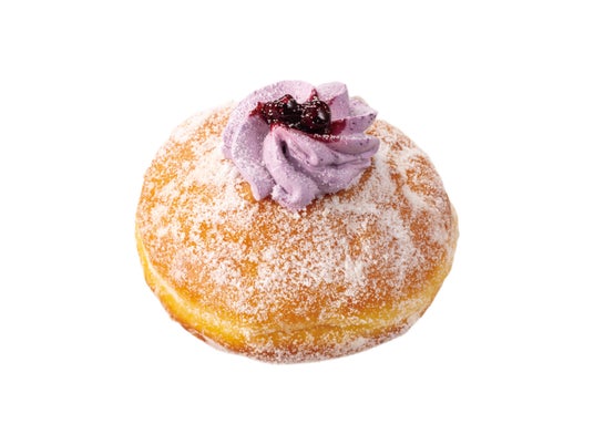 濃厚ブルーベリー生マラサダ 税込363円ふわっとなめらか生地に、ブルーベリーホイップをたっぷり。果実感のあるクリームを楽しめる、贅沢なドーナツ。