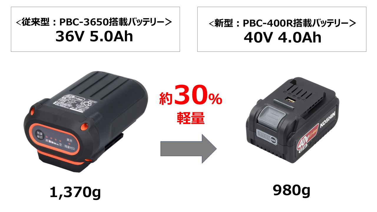 新開発の軽量かつパワフルを実現した40Vバッテリー