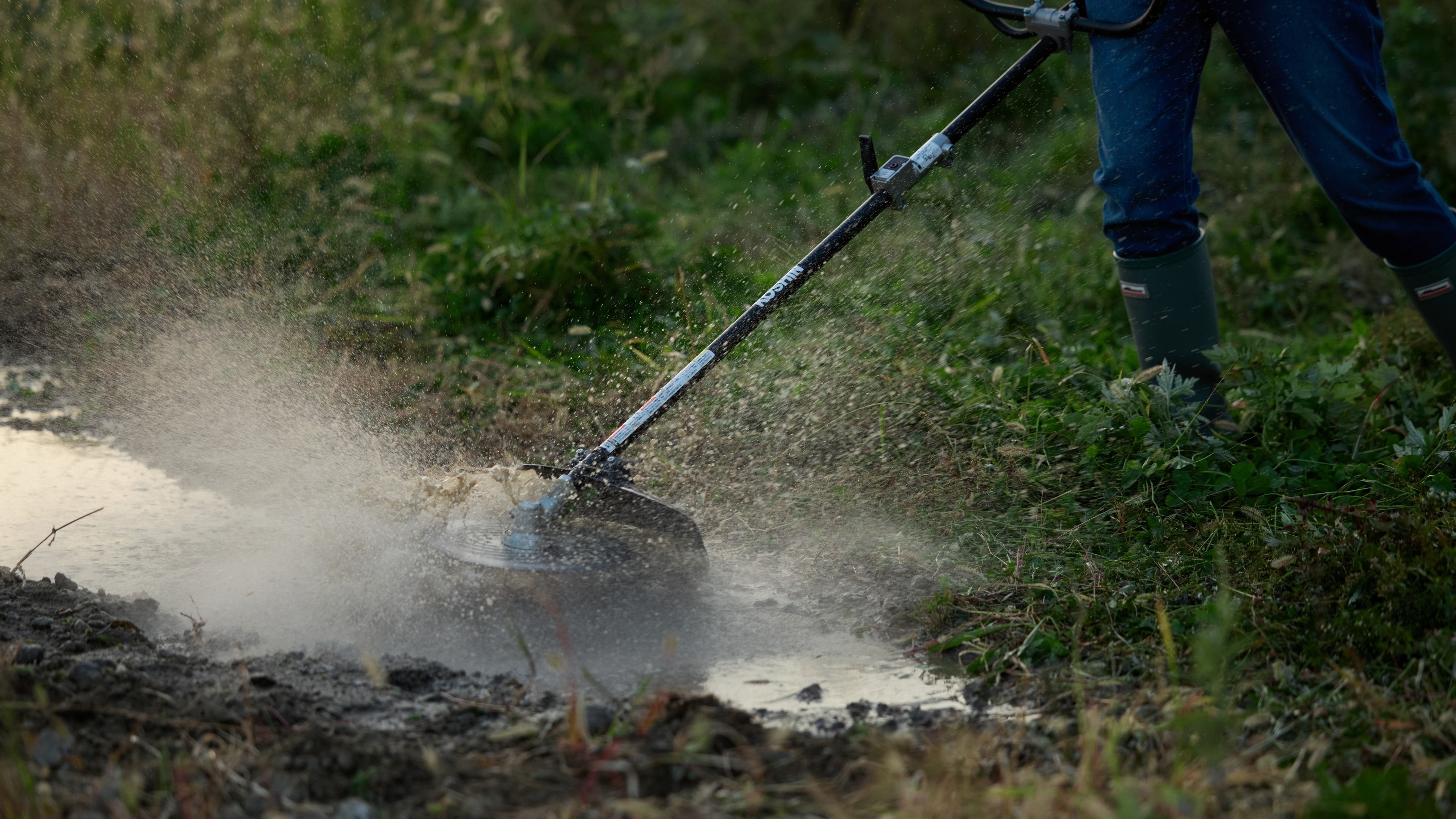 小雨や朝露など少々の雨の中でも作業を継続できる、防水保護等級 IPX4相当(IEC国際規格)を取得しています。水際でも気にせず草刈りできます。(*3)