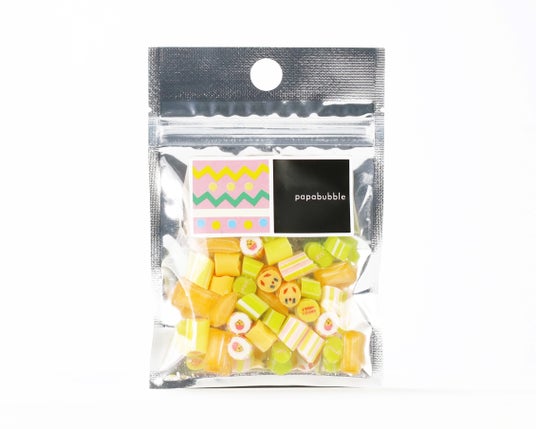 パパブブレならではの職人技を生かした枕型キャンディは、黄色いキャンディを透明なキャンディで包み、“生卵”をイメージしたデザインに仕上げています。