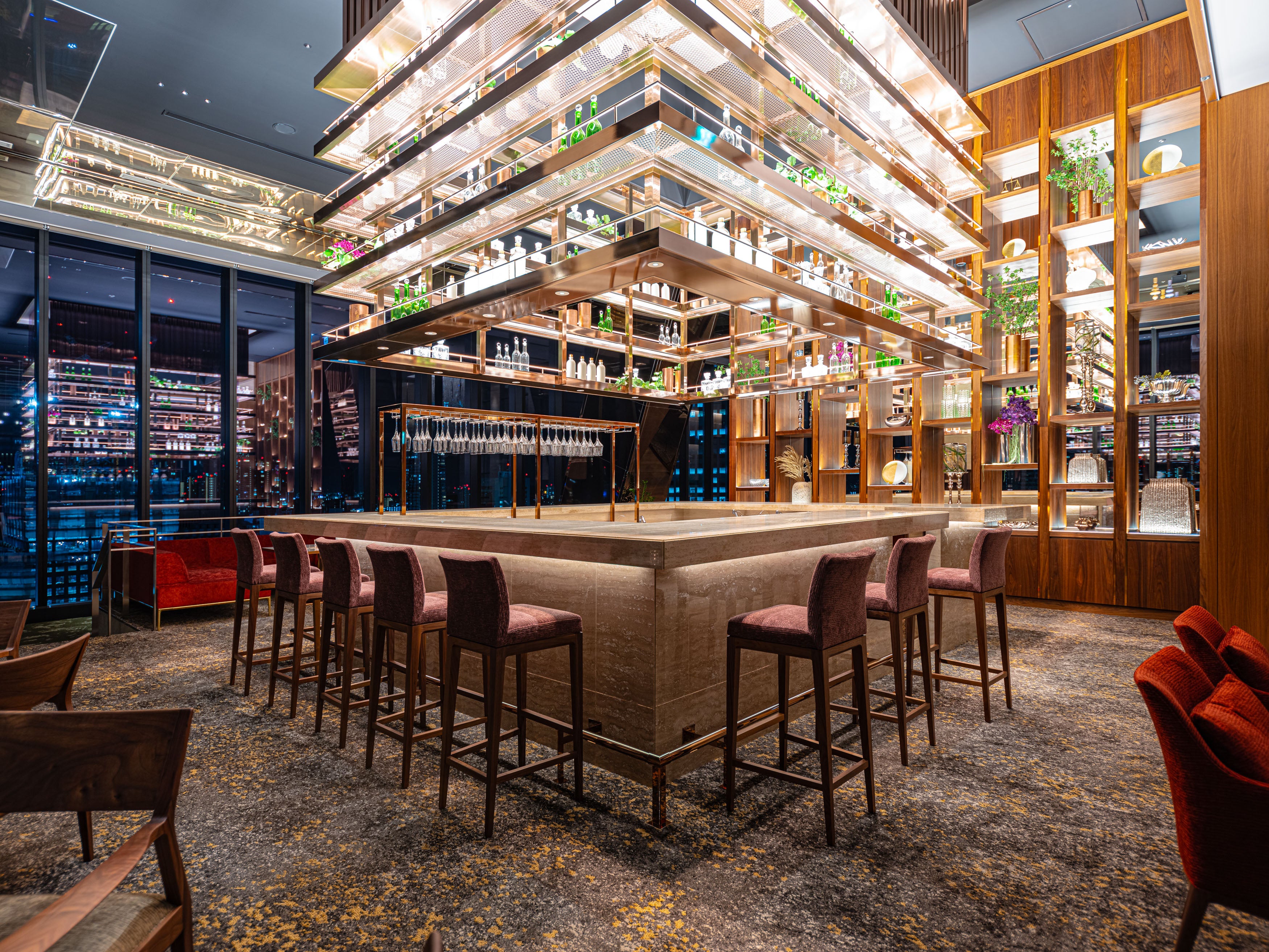 「THE C's SKY BAR」では、煌めく夜景を贅沢に独占し、こだわりのお酒と上質なおつまみを提供。ゆとりのある営業時間とともに、洗練された空間が大人の社交場としての品格を演出します。