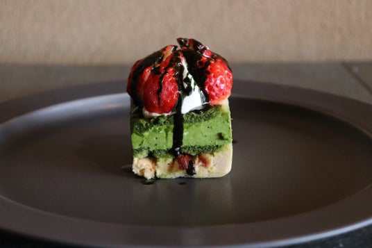 国産苺を合わせ、抹茶のほろ苦さと苺の甘酸っぱさ、和栗のやさしい甘みが重なり合う味わいをお楽しみいただけます。