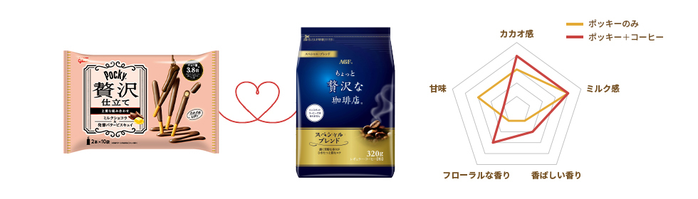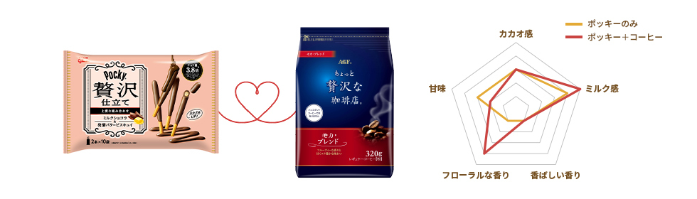 「ポッキー贅沢仕立て」<ミルクショコラ>×「ちょっと贅沢な珈琲店(R)」<スペシャル・ブレンド>(薄め)