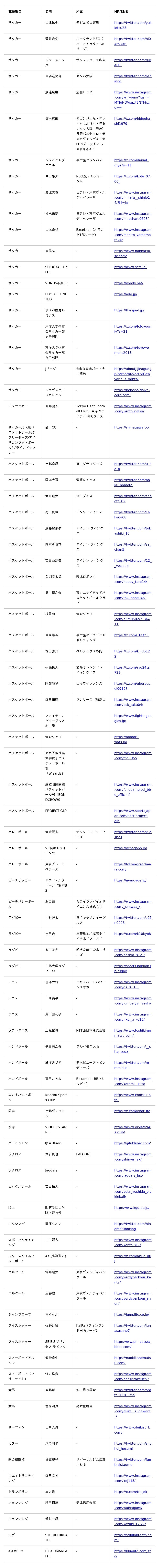 <BASE UP SPORTS サプライヤー契約一覧(現時点)>