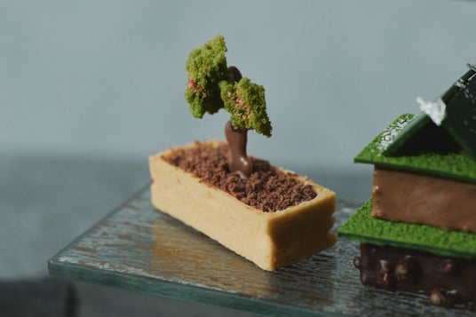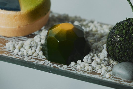 抹茶の濃厚なコクを閉じ込めたムースにベルガモットの気品ある香りをまとわせ、サクサクとした抹茶のクラムで苔生す庭園の情景を表現しました。