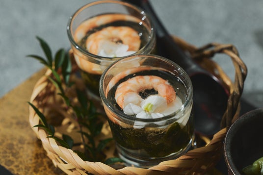 まろやかなお酢のジュレの中に、えびや帆立などの海の幸の恵みを閉じ込めました。