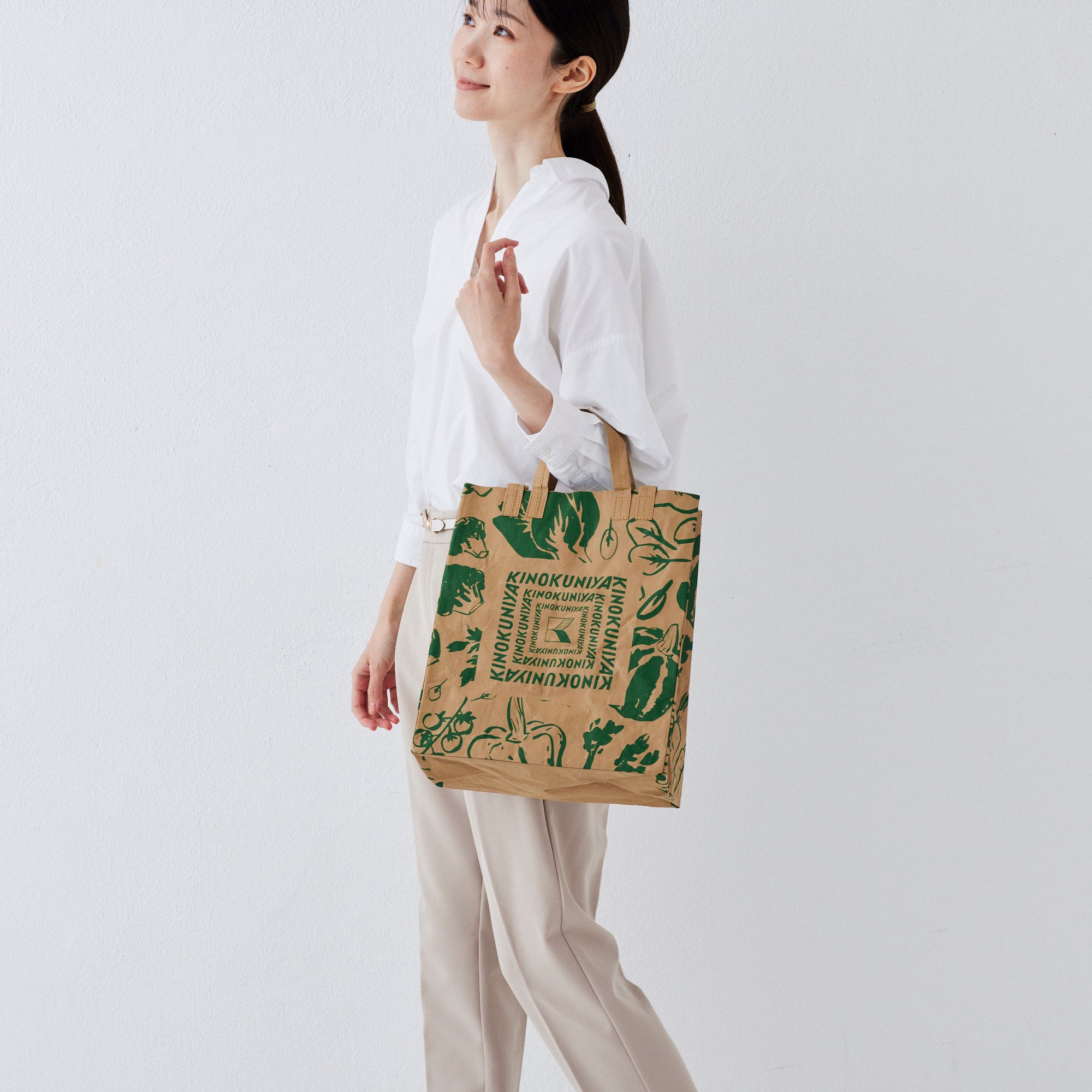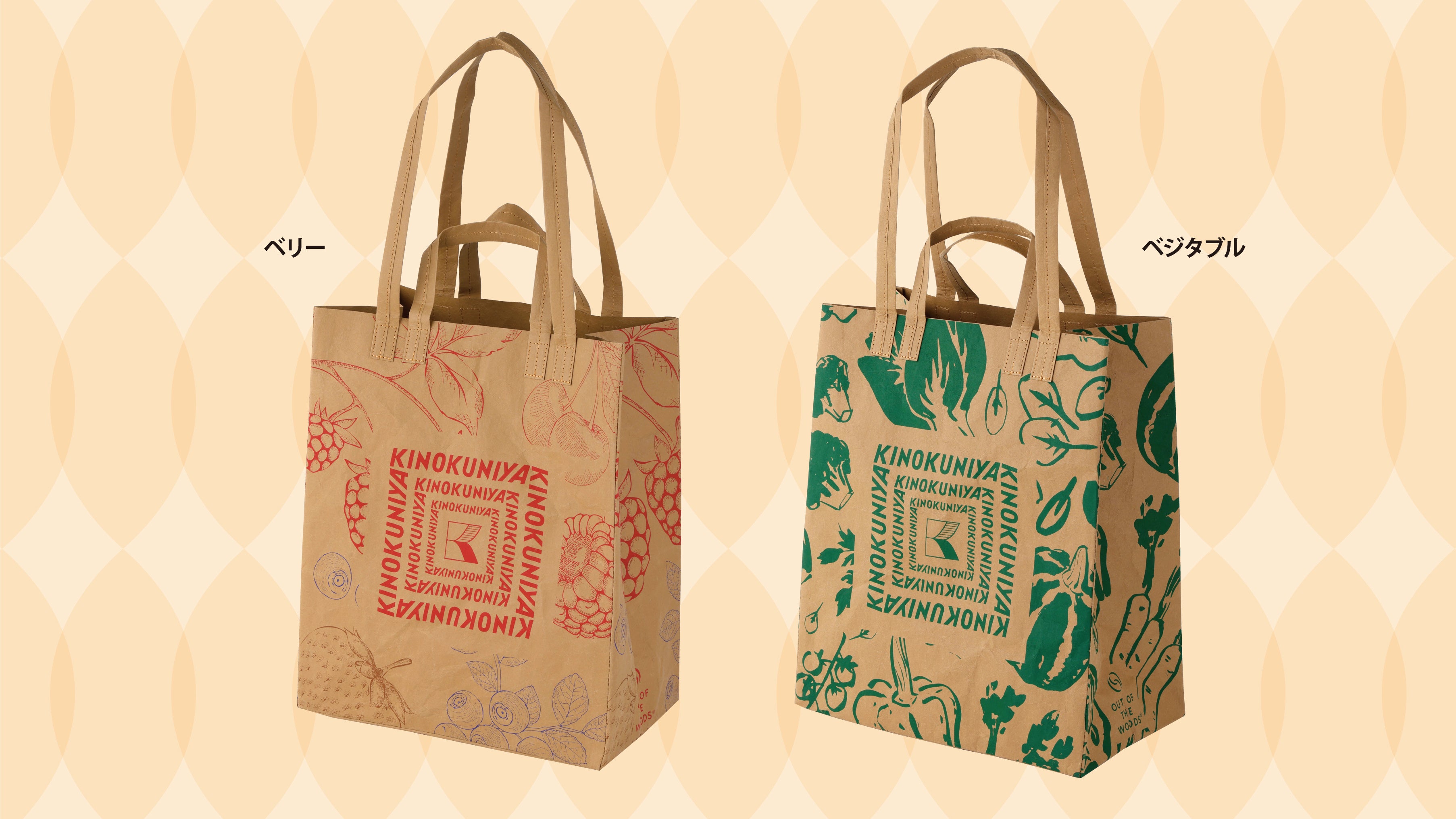デザインは、紀ノ国屋らしい食のモチーフを取り入れたベジタブル柄とベリー柄の2種類。ナチュラルな素材感に映えるおしゃれなイラストが魅力です。
