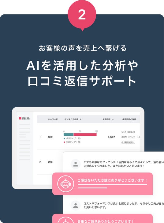 口コミを一元管理!AIが分析・返信をサポート