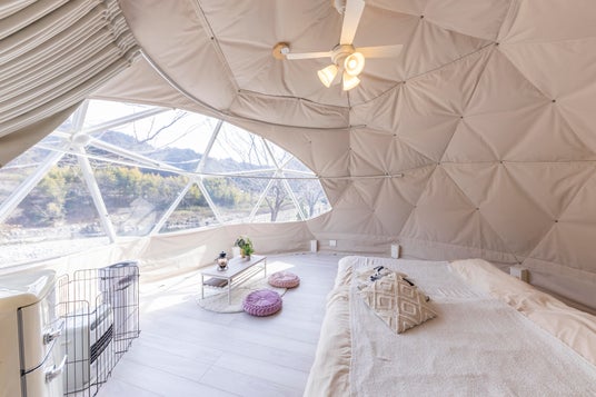 各棟には専用ユニットバス・トイレを完備。さらに専用BBQスペースや充実した客室設備を備えており、アウトドア初心者の方でも安心してご利用いただけます。また全室冷暖房完備のため、季節を問わず一年中快適にグランピング滞在をお楽しみいただけます。
