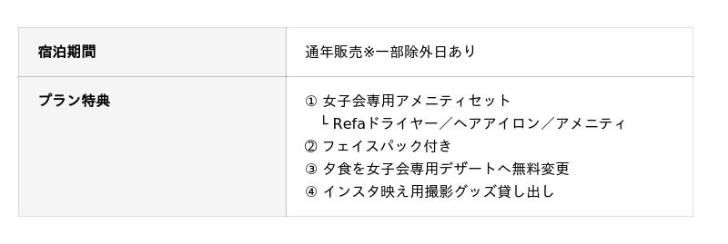 今回、期間限定で1名3,000円OFFとなるお得なセールプランをはじめ、サウナ好きの方に向けたリトリートプランや女性グループ限定のご褒美女子会プランなど、3つの新プランの販売を開始しました。