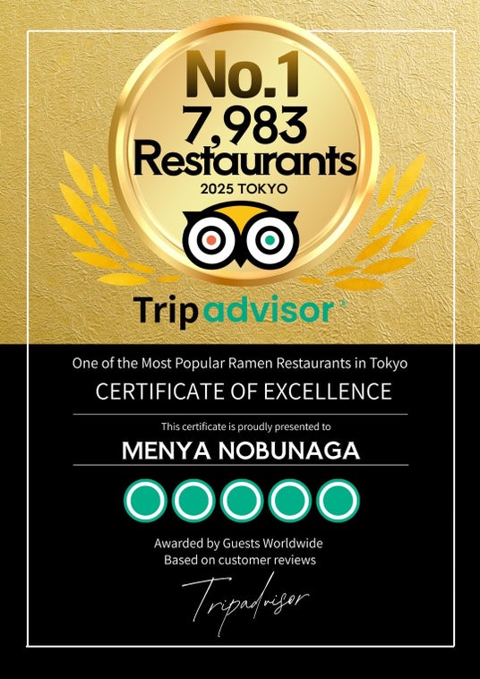 「TripAdvisor」の都内のラーメンランキングで「1位」を獲得いたしました。