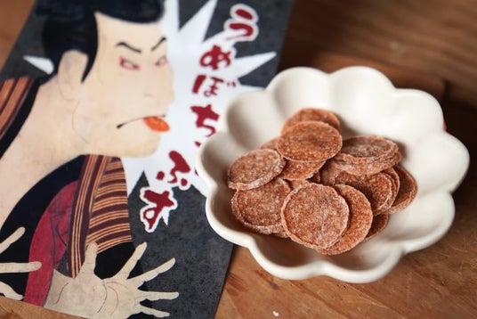 梅干しの果肉をそのままぎゅっと一枚のチップスにしました。