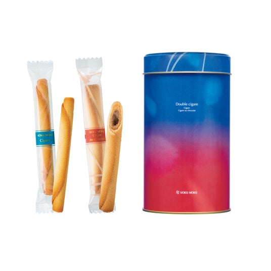 ロングセラーの「シガール(R)」と、シガール(R)にミルクチョコレートを詰めた「シガール オゥ ショコラ」を、上品でやわらかな印象のオリジナルデザイン缶に詰め合わせた「ドゥーブル シガール」。