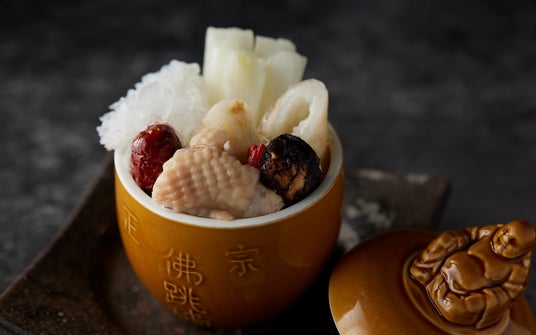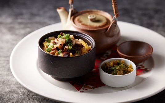クコの実や蓮の実、なつめ、干し椎茸、白きくらげなど、中国漢方に由来する素材をともに蒸し、滋味深い味わいに仕立てています。