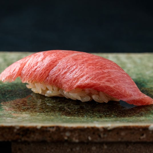 日本料理の技術を軸に、鮨・天麩羅・ステーキそれぞれの魅力を一つのコースの中で楽しめる構成となっています。江戸前の技が光る鮨、目の前で揚げられる軽やかな天麩羅、そして厳選された和牛のステーキ。素材の持ち味を最大限に引き出した料理の数々を、アクアリウムの幻想的な空間とともに堪能できます。