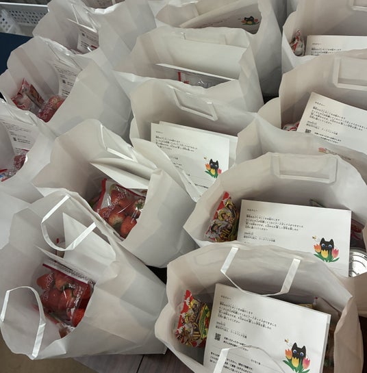 資金のご寄付を頂いた方、食材のご寄付をいただいた方、食品の運搬や仕分け、袋詰め、配達に関わって下さったボランティアの皆様に深く感謝致します。