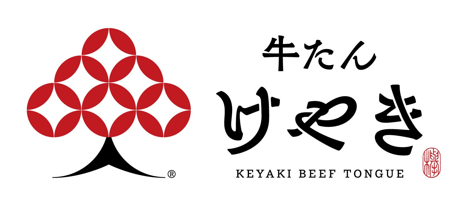 伝統の和柄・七宝柄をモチーフに牛たんへのときめきを表現した『牛たん けやき』のシンボルマーク(登録商標第6726720号)と、タグライン『厚っ、やわっ、うまっ。』(登録商標第6784458号)は商標番号を取得いたしました。