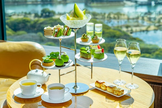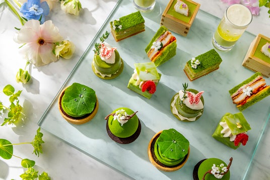 初夏へと向かう穏やかな季節に、生き生きと輝く植物や色とりどりの花が美しく映えるボタニカルガーデンから着想を得た、抹茶アフタヌーンティーをお届けします。抹茶はすべて京都・宇治産を使用し、フルーツやハーブを合わせて抹茶の緑と深みを引き立てた、スイーツ5種とセイボリー3種をご提供いたします。ウェルカムドリンクに京都宇治の老舗 山政小山園(やままさ こやまえん)の抹茶を使用した「宇治抹茶の塩ミルクフォームラテ」をお楽しみいただけるほか、開業以来変わらぬレシピで人気のスコーンはプレーンに加え、抹茶生地にホワイトチョコレートを合わせた季節限定フレーバーが登場。